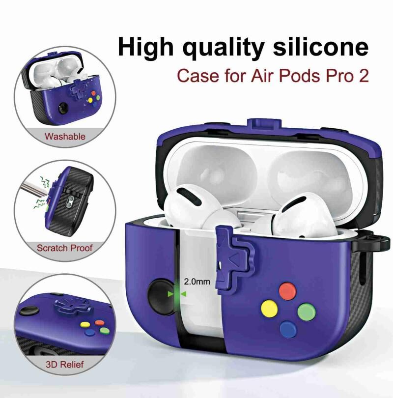 For AirPods Pro 2 Game Console Shape Wireless Earphones Protective Case(Purple)