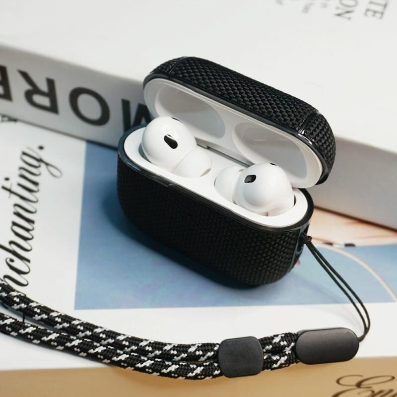 Θήκη για AirPods Pro 2 από Νάιλον, Αδιάβροχη, Ασύρματα Ακουστικά με Λουρί (Μαύρο)