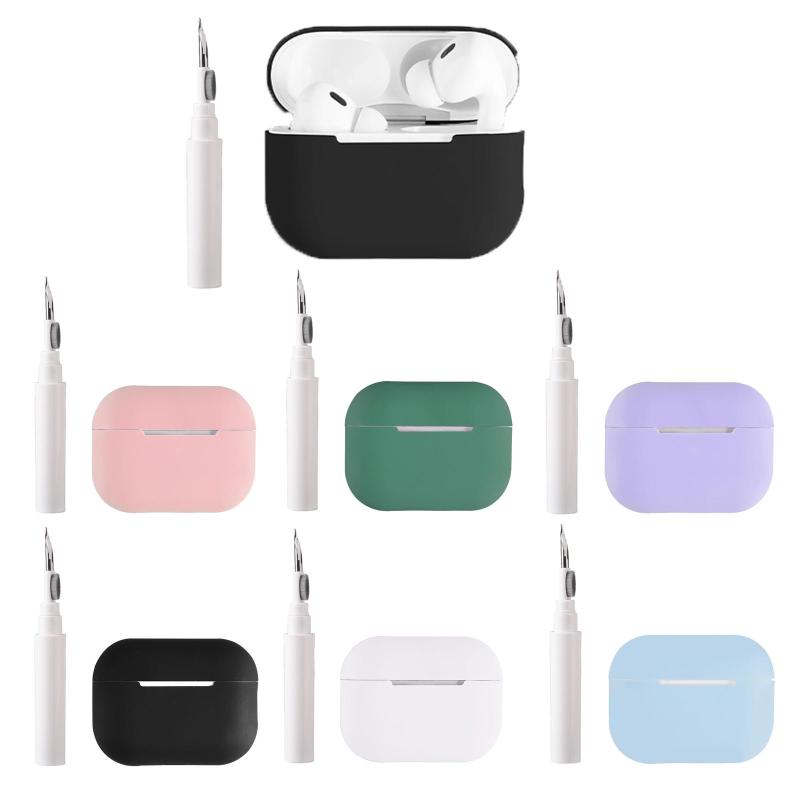 For AirPods Pro 2 Silicone Earphone Protective Case with Cleaning Pen(Black)