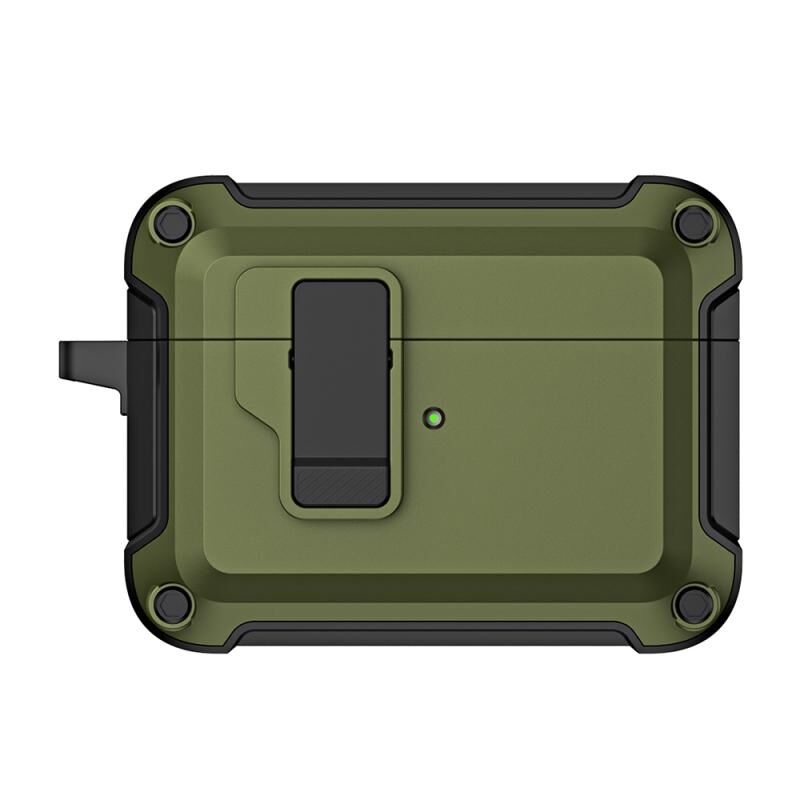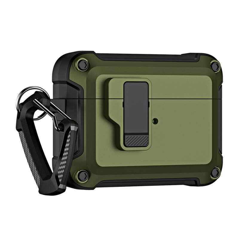 Θήκη προστασίας για AirPods Pro 2 TPU + PC, ασύρματα Bluetooth ακουστικά με κλείδωμα ασφαλείας & γάντζο (Σκούρο πράσινο)