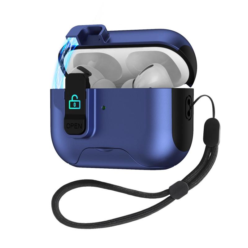 For AirPods Pro Automatic Pop-up Cover Holder Earphone Case with Switch Lock(Dark Blue)