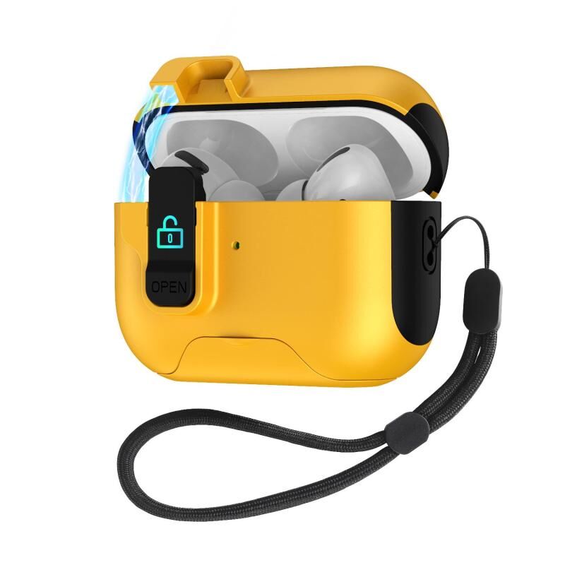 For AirPods Pro Automatic Pop-up Cover Holder Earphone Case with Switch Lock(Yellow)