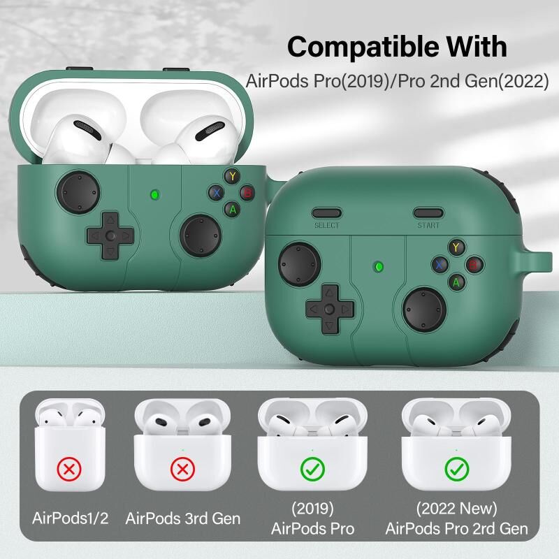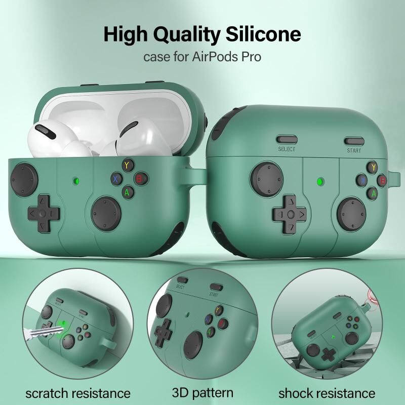 For AirPods Pro Game Console Style Wireless Earphone Silicone Case(Pine Green)