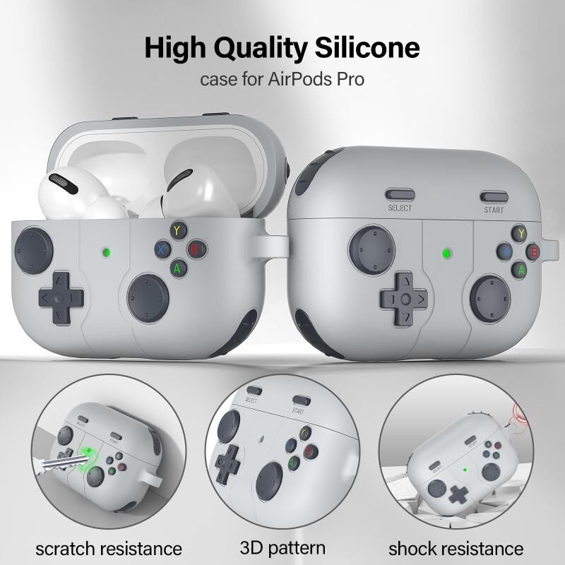 For AirPods Pro Game Console Style Wireless Earphone Silicone Case(Rock Grey)