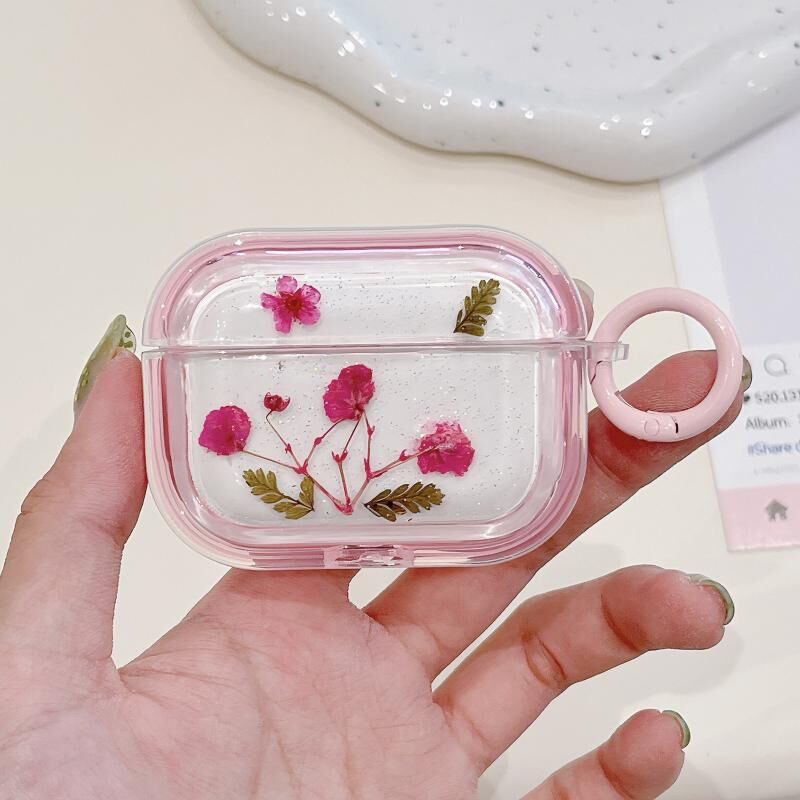 Θήκη για AirPods Pro Glitter Starry Epoxy Αποξηραμένα Λουλούδια, μαλακή σιλικόνη TPU (Μωβ)