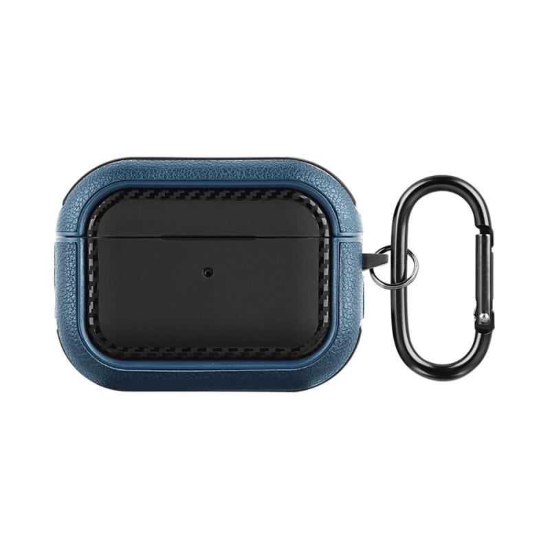 For AirPods Pro Leather Texture Earphone Protective Case(Black Blue)