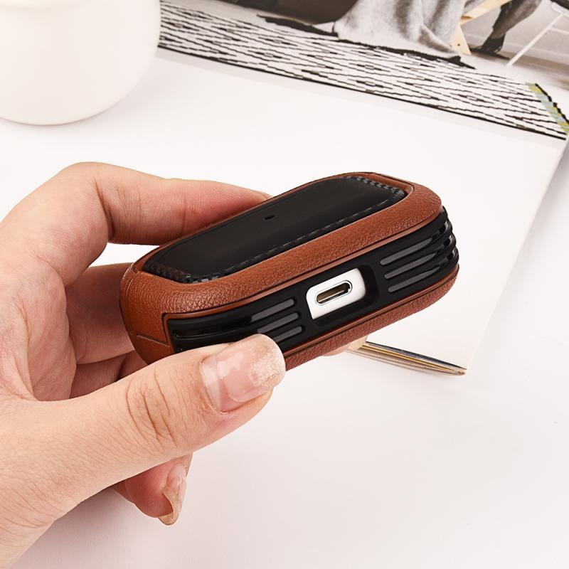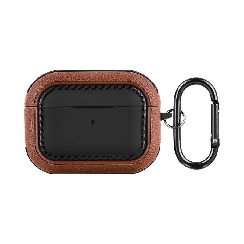 For AirPods Pro Leather Texture Earphone Protective Case(Black Brown)