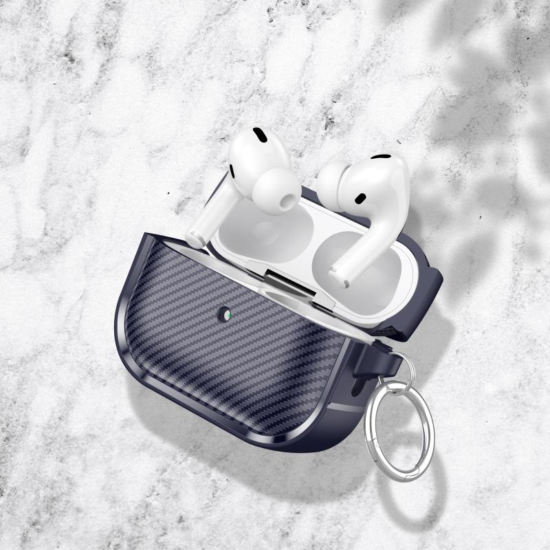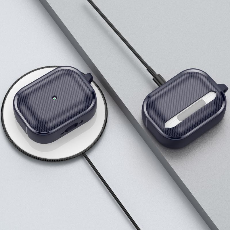 For AirPods Pro Photo Frame Carbon Fiber Series Earphone Case(Dark Blue)