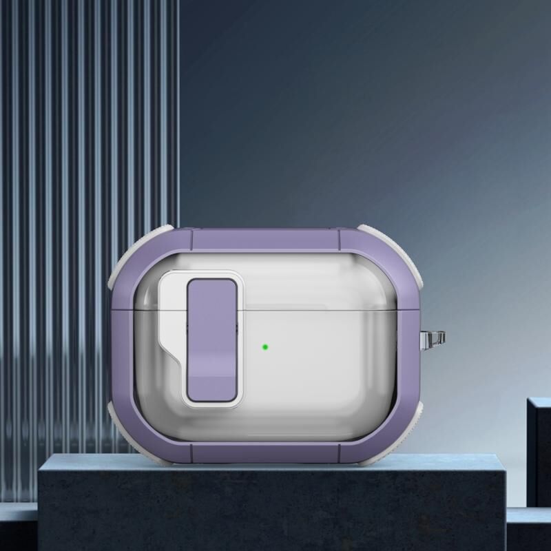 For AirPods Pro Thunder Clear Wireless Earphones Protective Case with Magnetic Switch(Light Purple)