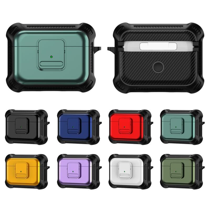 Θήκη προστασίας ακουστικών AirPods Pro TPU + PC ανθεκτική σε κρούσεις με διακόπτη (Μαύρο)