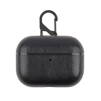 For Apple AirPods Pro Wireless Earphone Protective Leather Case with Hook(Black)