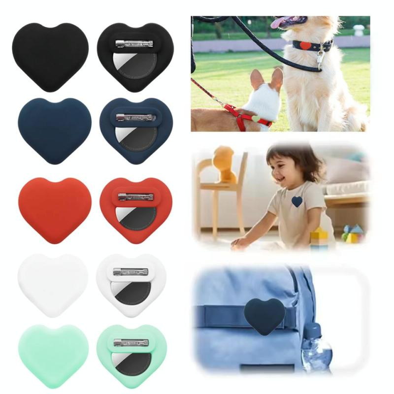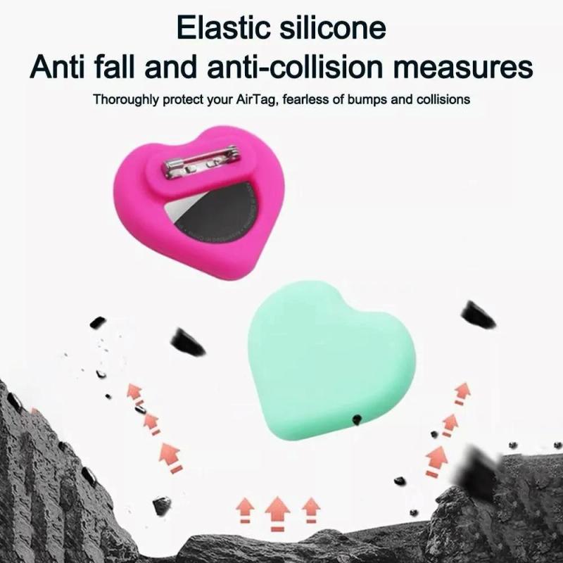 Θήκη σιλικόνης σε σχήμα καρδιάς για AirTag GPS Tracker με καρφίτσες ασφαλείας κρυμμένες μέσα σε ρούχα και παπούτσια (Πράσινο)