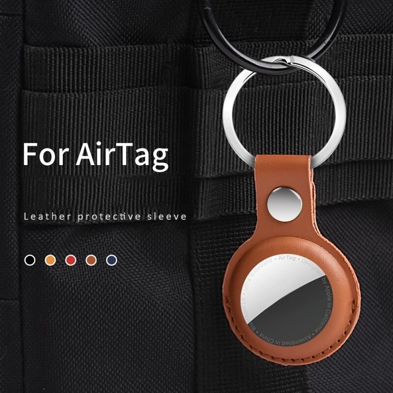 Θήκη προστασίας δέρματος αντικραδασμική, αντιχαρακτική για AirTag με θηλιά ανάρτησης και μπρελόκ (Μαύρο)