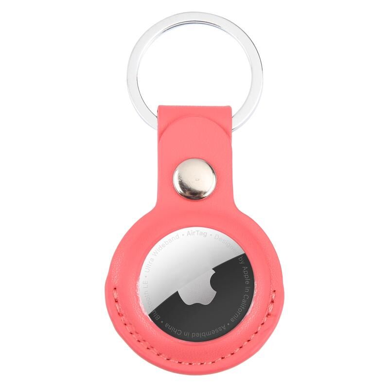 For AirTag Shockproof Anti-scratch Leather Protective Case Cover with Hang Loop Key Chain(Rose Red)