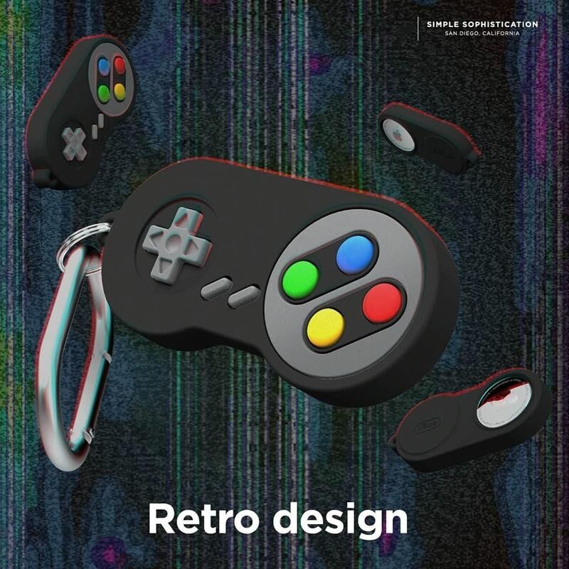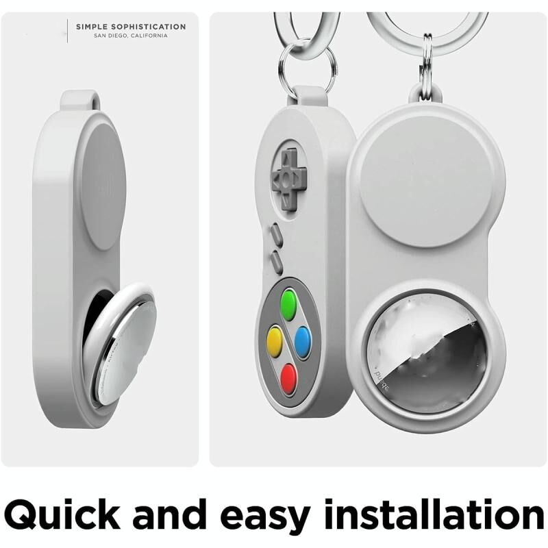Θήκη σιλικόνης για AirTag Tracker σε σχήμα ρετρό κονσόλας παιχνιδιών με καραμπίνερ (Μελανοπράσινο)