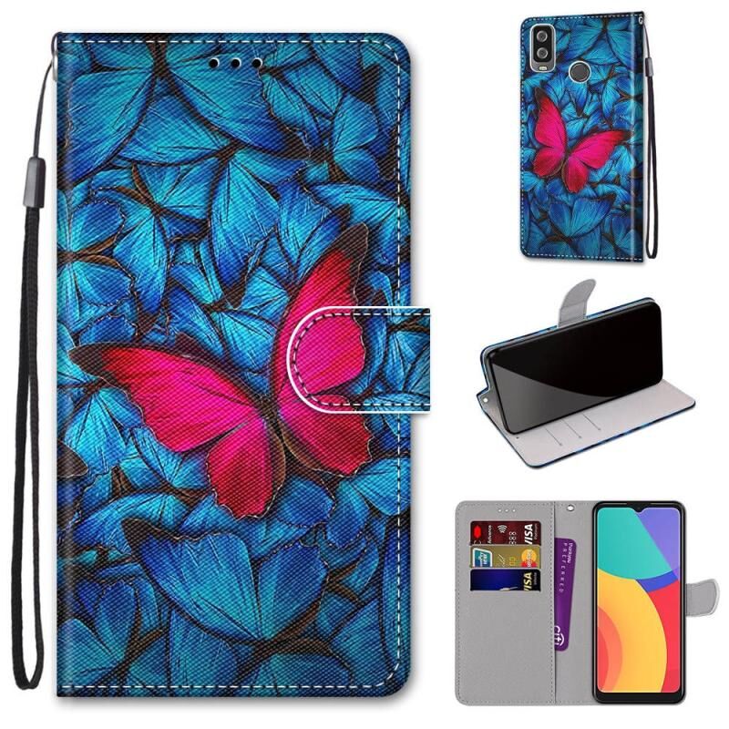 For Alcatel 1L (2021) Coloured Drawing Cross Texture Horizontal Flip PU Leather Case with Holder & Card Slots & Wallet & Lanyard(Blue Red Butterfly)