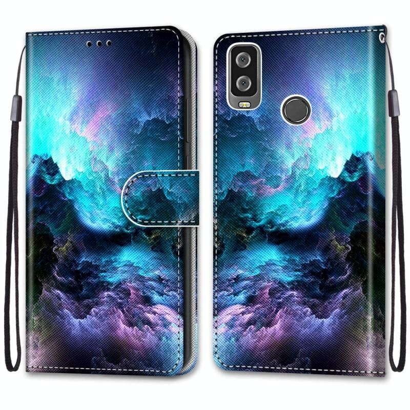 For Alcatel 1L (2021) Coloured Drawing Cross Texture Horizontal Flip PU Leather Case with Holder & Card Slots & Wallet & Lanyard(Colorful Clouds)