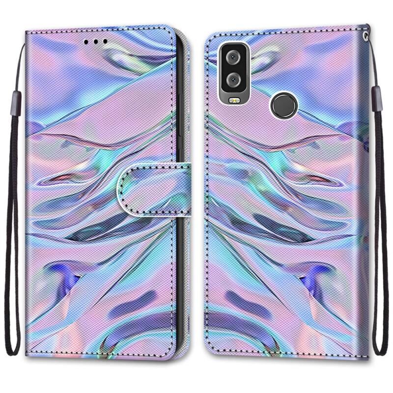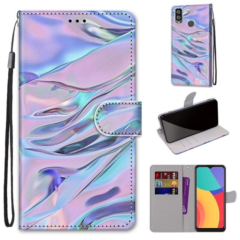 For Alcatel 1L (2021) Coloured Drawing Cross Texture Horizontal Flip PU Leather Case with Holder & Card Slots & Wallet & Lanyard(Fluorescent Water Texture)