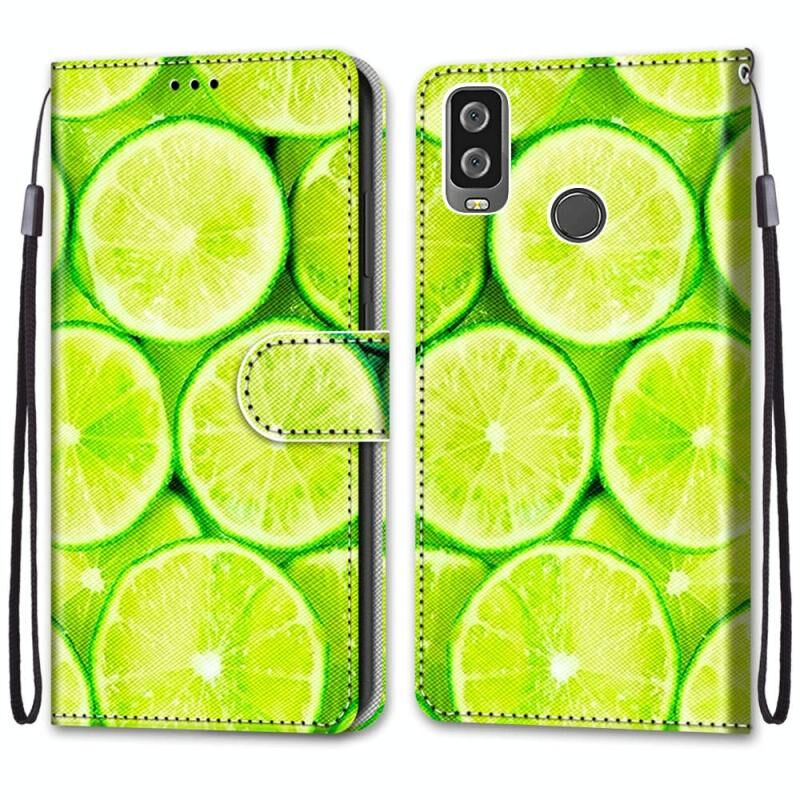 For Alcatel 1L (2021) Coloured Drawing Cross Texture Horizontal Flip PU Leather Case with Holder & Card Slots & Wallet & Lanyard(Green Lemon)