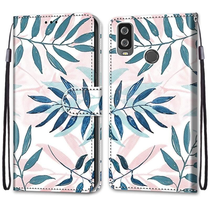 For Alcatel 1L (2021) Coloured Drawing Cross Texture Horizontal Flip PU Leather Case with Holder & Card Slots & Wallet & Lanyard(Pink Green Leaf)