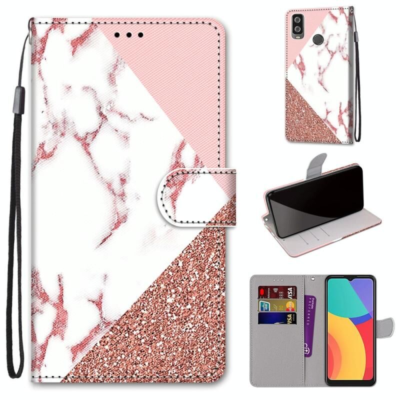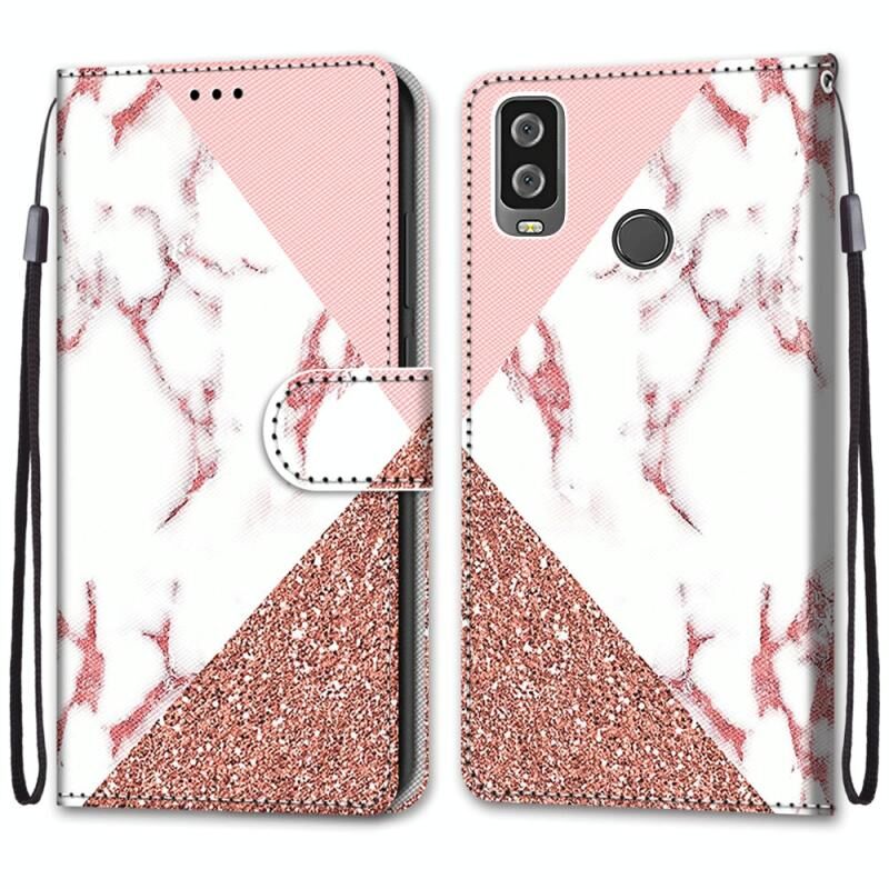 For Alcatel 1L (2021) Coloured Drawing Cross Texture Horizontal Flip PU Leather Case with Holder & Card Slots & Wallet & Lanyard(Pink Stone Texture)