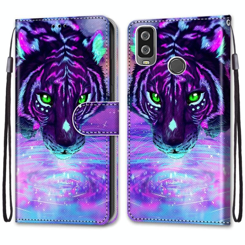 For Alcatel 1L (2021) Coloured Drawing Cross Texture Horizontal Flip PU Leather Case with Holder & Card Slots & Wallet & Lanyard(Tiger Drinking Water)
