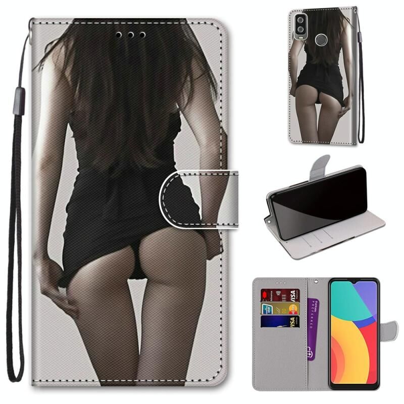For Alcatel 1L (2021) Coloured Drawing Cross Texture Horizontal Flip PU Leather Case with Holder & Card Slots & Wallet & Lanyard(Upskirt)