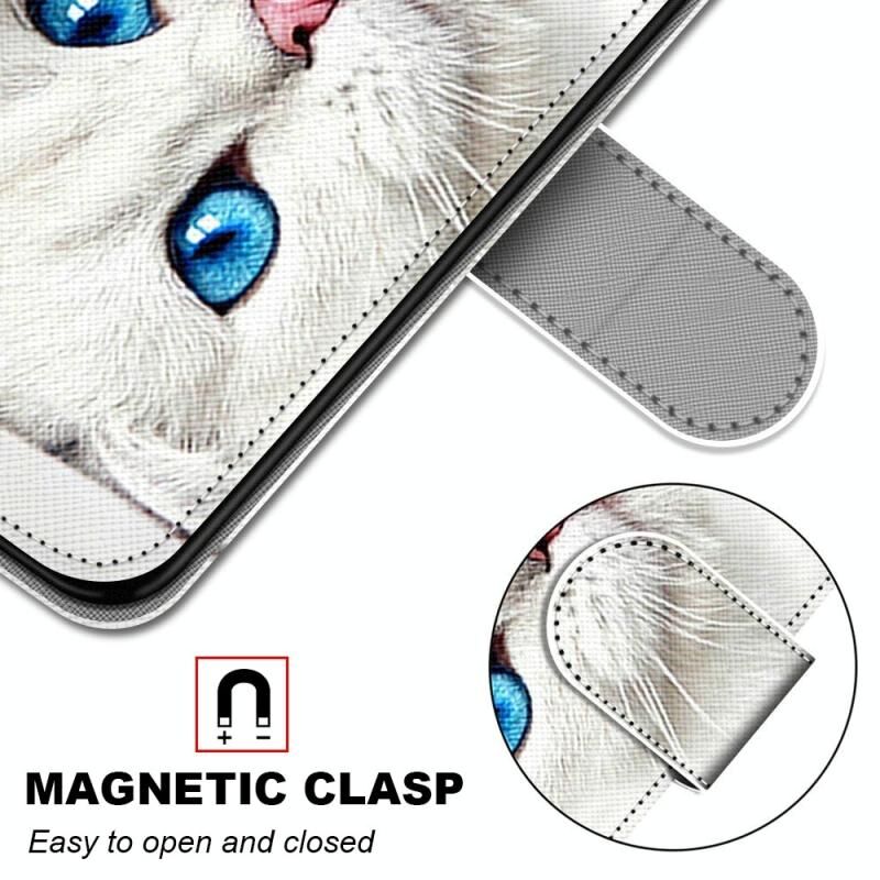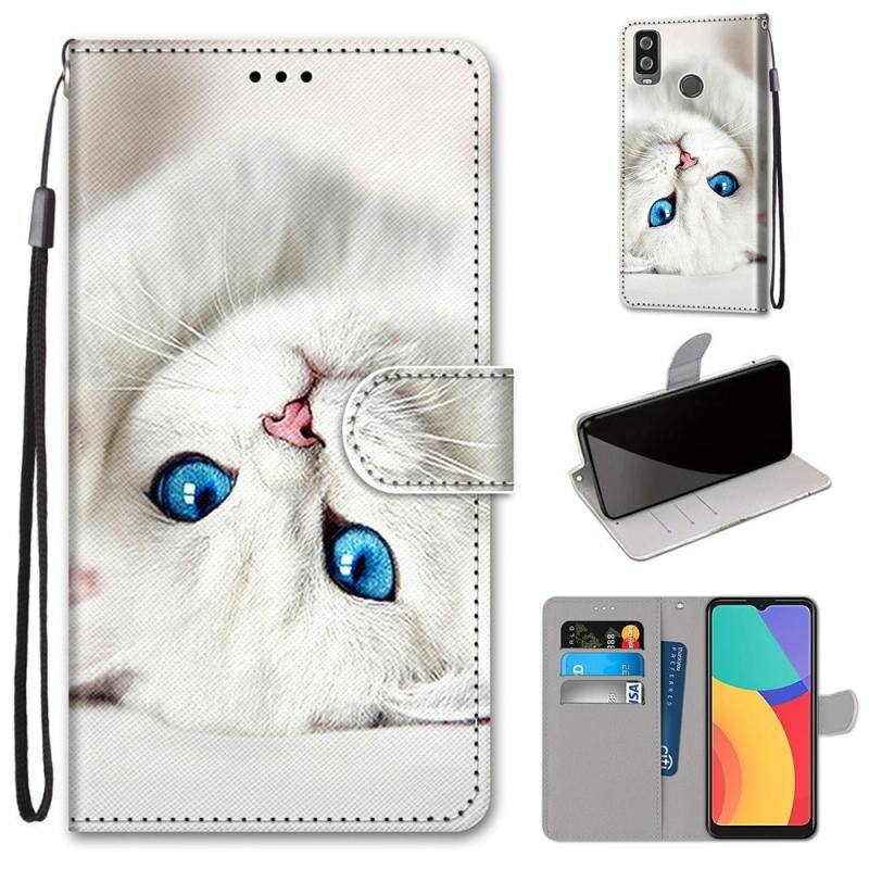 For Alcatel 1L (2021) Coloured Drawing Cross Texture Horizontal Flip PU Leather Case with Holder & Card Slots & Wallet & Lanyard(White Kitten)