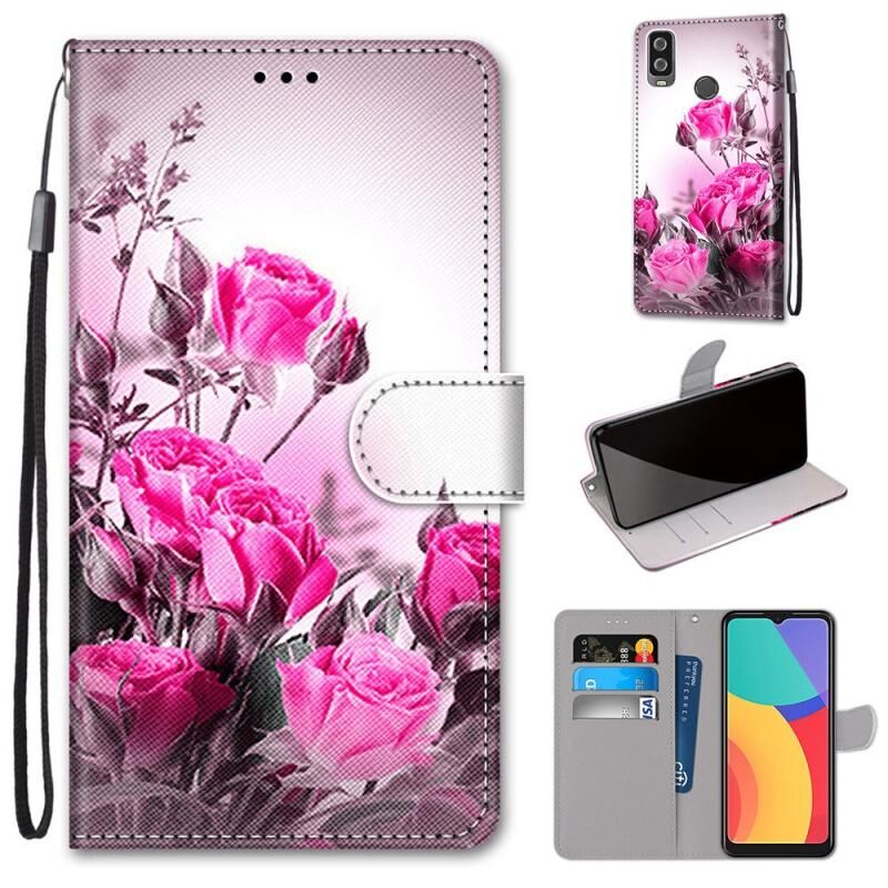 For Alcatel 1L (2021) Coloured Drawing Cross Texture Horizontal Flip PU Leather Case with Holder & Card Slots & Wallet & Lanyard(Wild Rose)