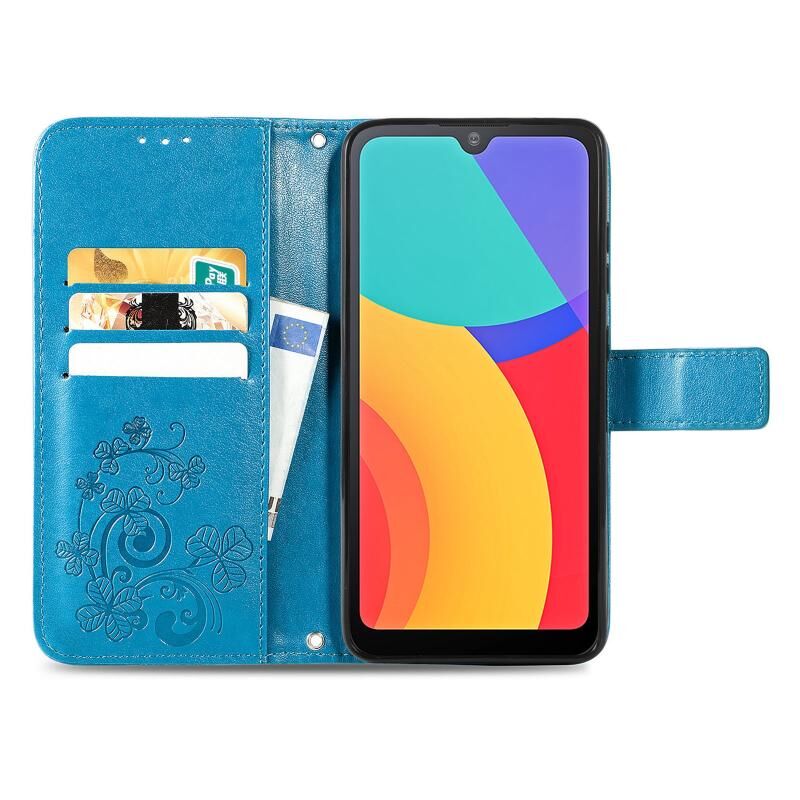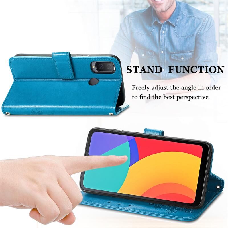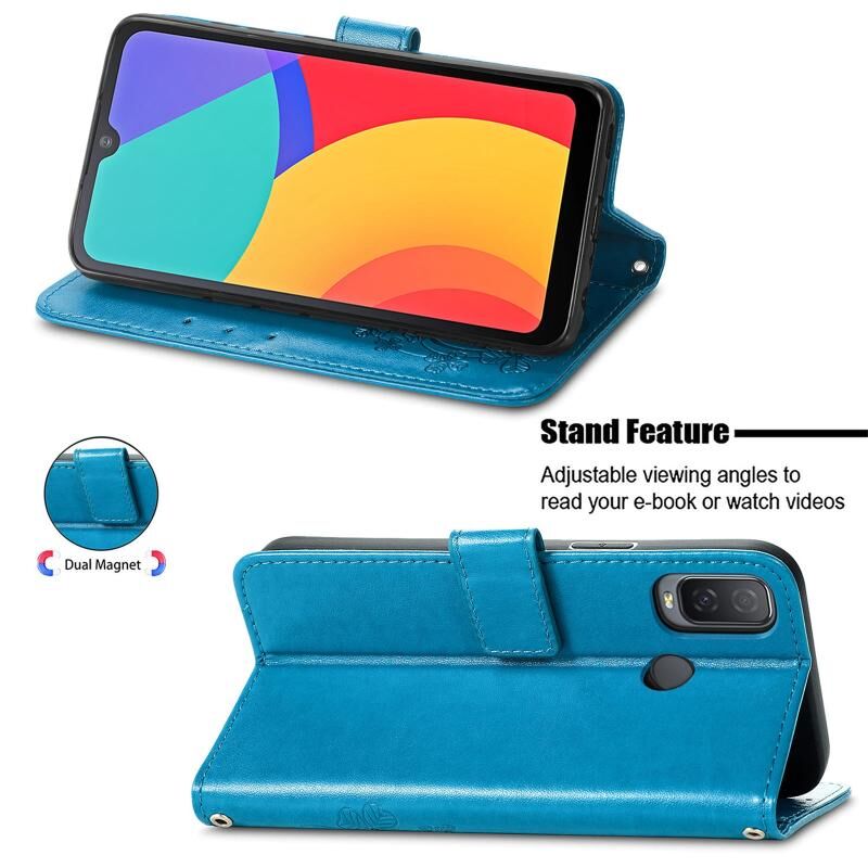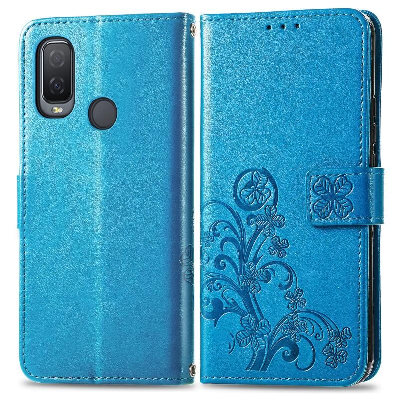 Θήκη δερμάτινη για Alcatel 1L 2021 με σχέδιο τριφυλλιού, ανάγλυφο κούμπωμα, προστασία κινητού, λουρί, θήκη για κάρτες, πορτοφόλι και λειτουργία βάσης (Χρυσό ροζ)