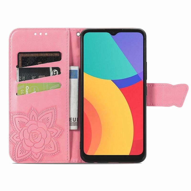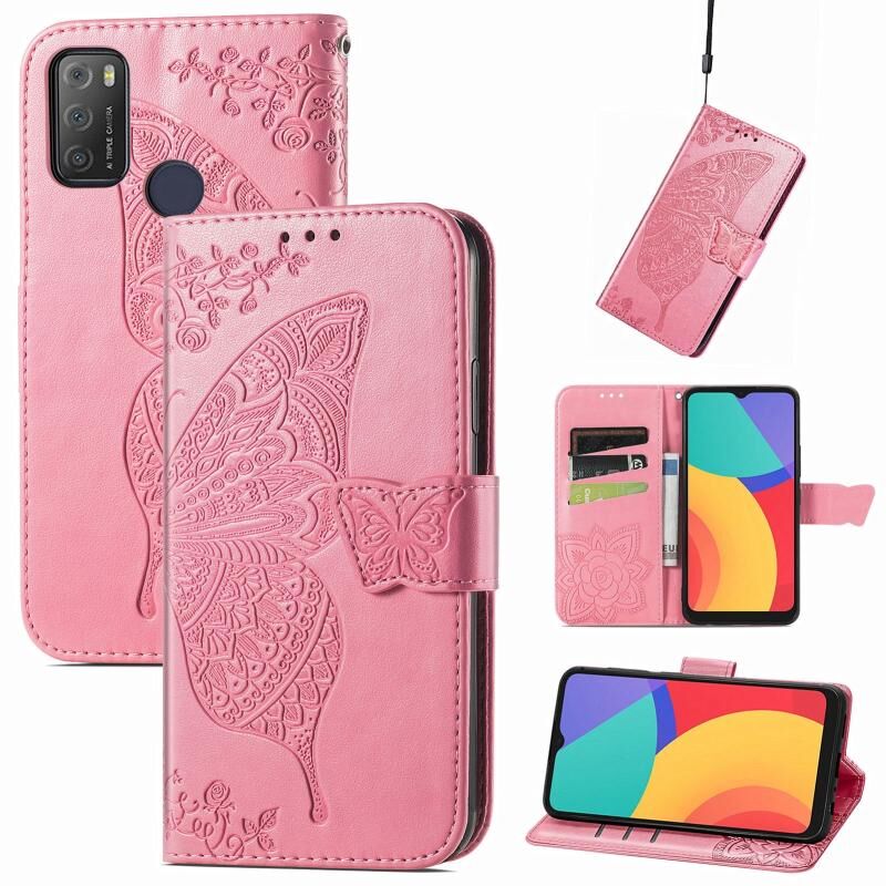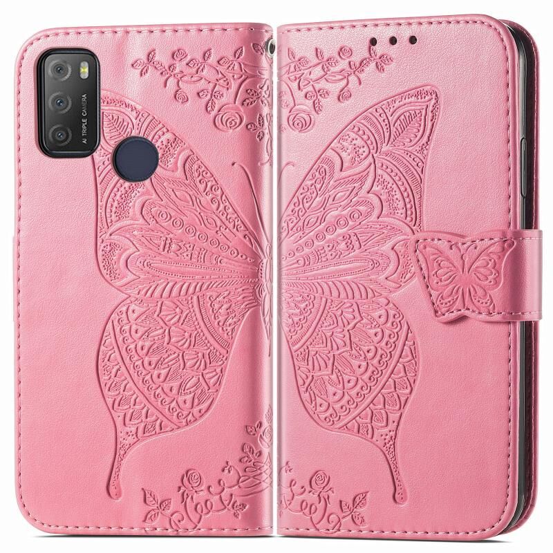 Θήκη Alcatel 1S 2021 Butterfly Love Λουλούδι Embossed Οριζόντια Δερμάτινη με Στήριξη & Θήκες Καρτών & Πορτοφόλι & Λουρί (Μαύρο)