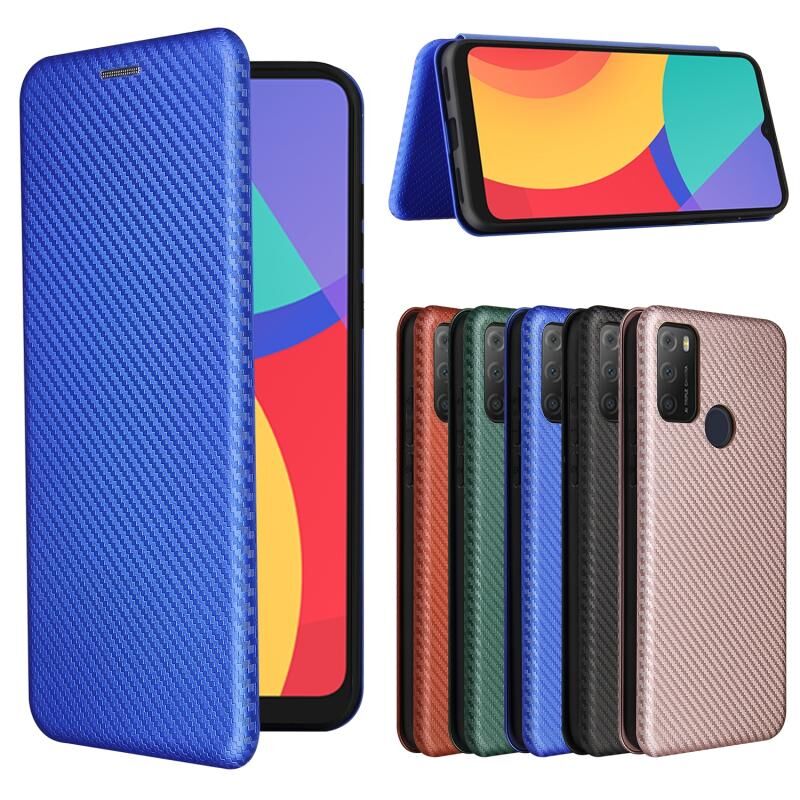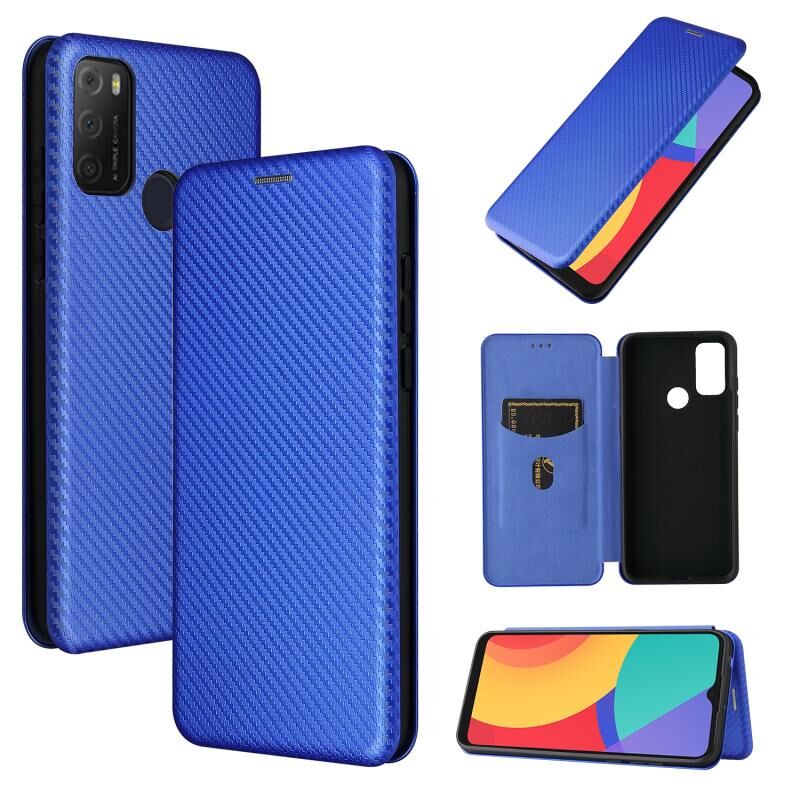 Για το Alcatel 1S (2021) Carbon Fiber Texture Horizontal Flip TPU + PC + PU Leather Case με υποδοχή κάρτας (μπλε)