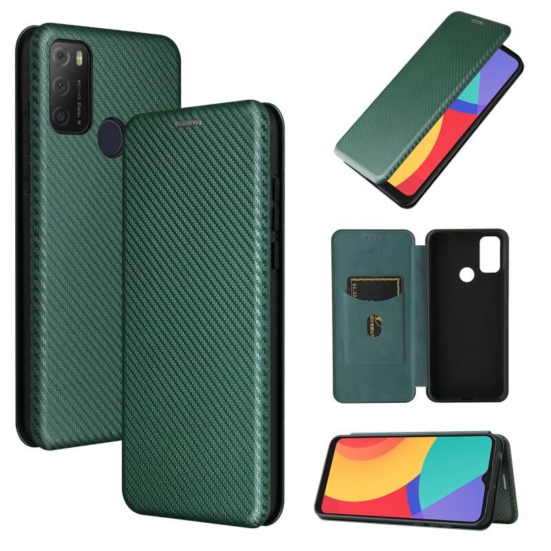 Για το Alcatel 1S (2021) Carbon Fiber Texture Horizontal Flip TPU + PC + PU Leather Case με υποδοχή κάρτας (πράσινο)