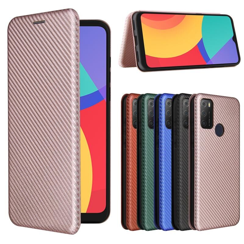 Για alcatel 1S (2021) Carbon Fiber υφή οριζόντια Flip TPU + PC + PU δέρμα υπόθεση με υποδοχή κάρτας (ροζ)