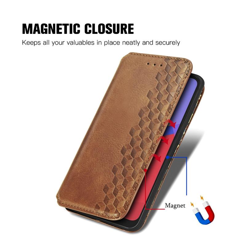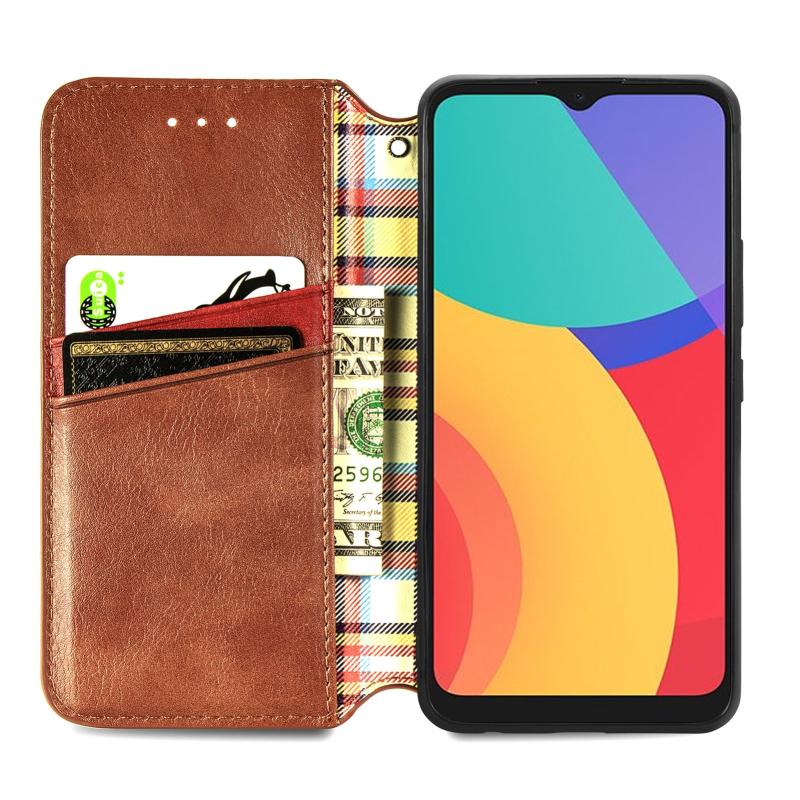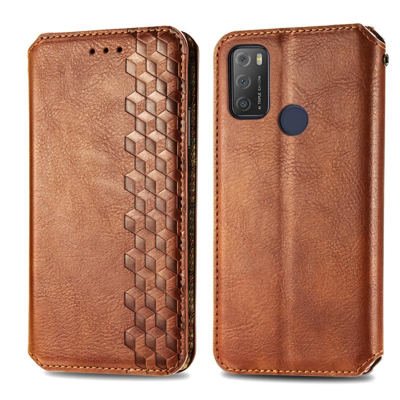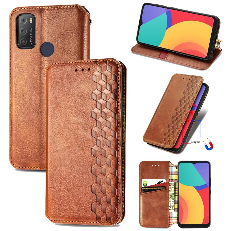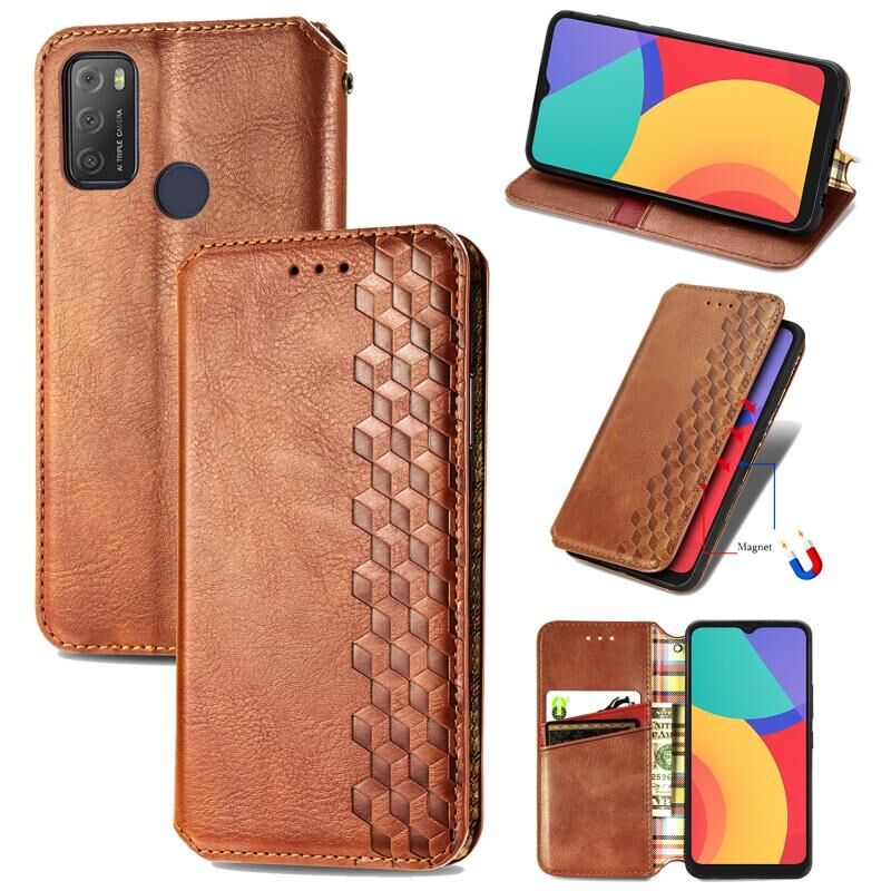 For Alcatel 1S 2021 Cubic Grid Pressed Horizontal Flip Magnetic PU Leather Case with Holder & Card Slots & Wallet(Brown)
