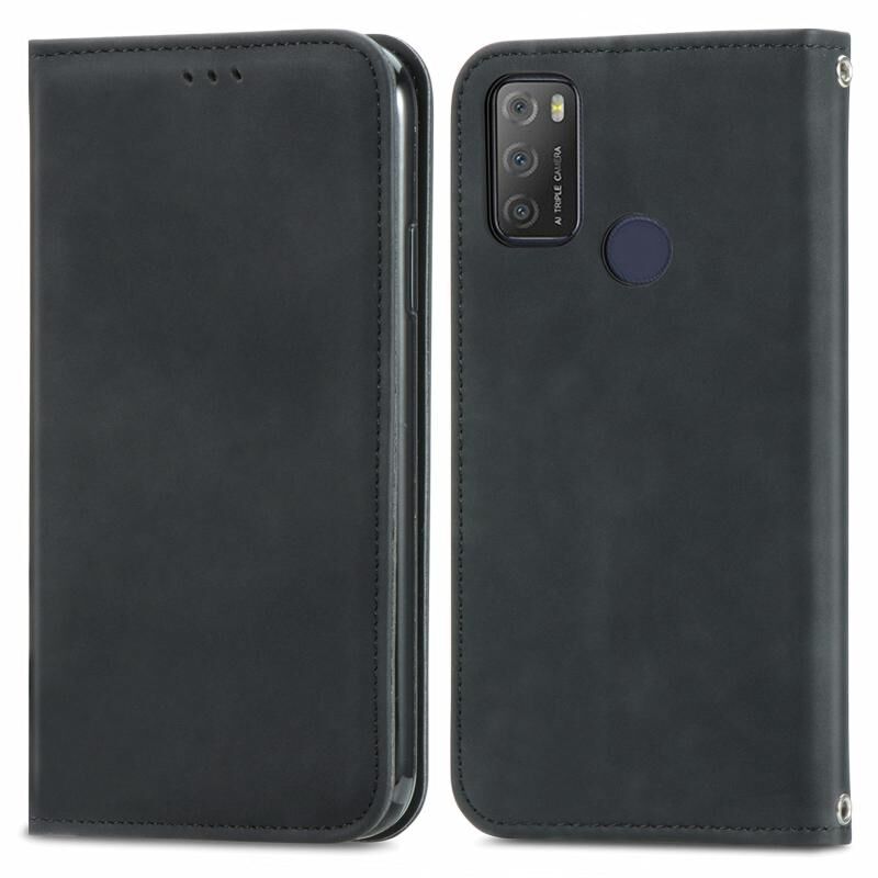 Για Alcatel 1S 2021 Retro Skin Feel Business Μαγνητική οριζόντια Flip δερμάτινη θήκη με υποδοχές για κάρτες & πορτοφόλι & πλαίσιο φωτογραφιών (μαύρο)