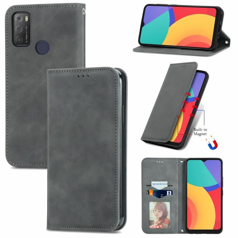 Για Alcatel 1S 2021 Retro Skin Feel Business μαγνητική οριζόντια Flip δερμάτινη θήκη με κάτοχο & υποδοχές καρτών & πορτοφόλι & πλαίσιο φωτογραφιών (γκρι)