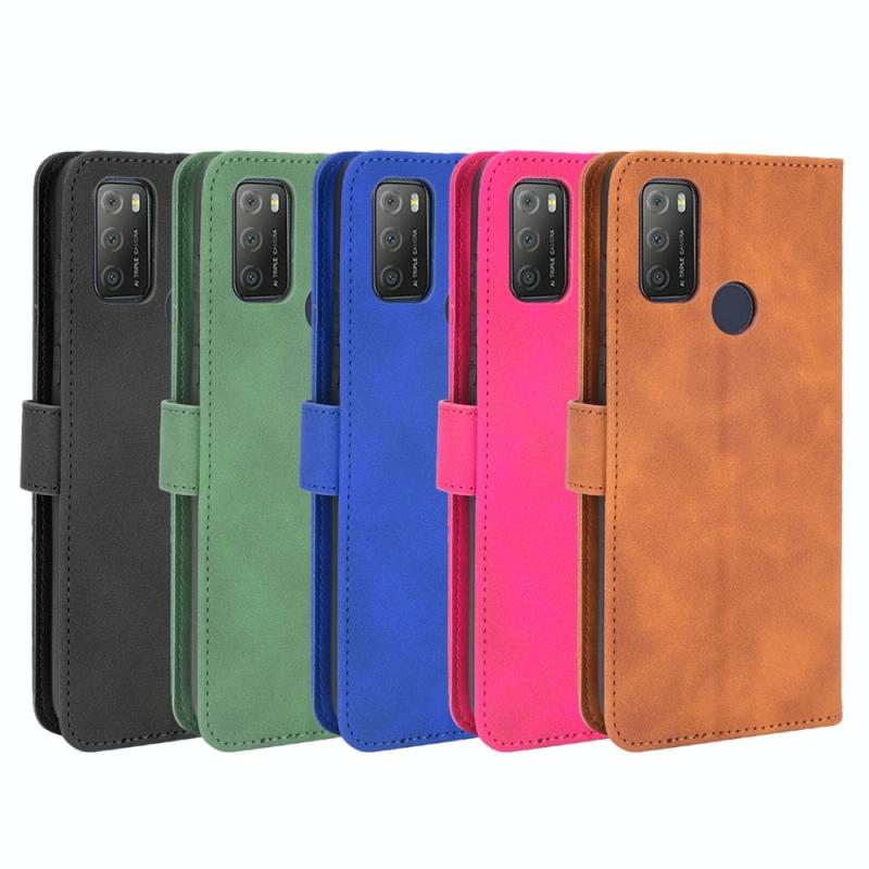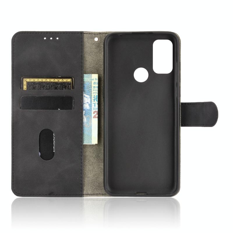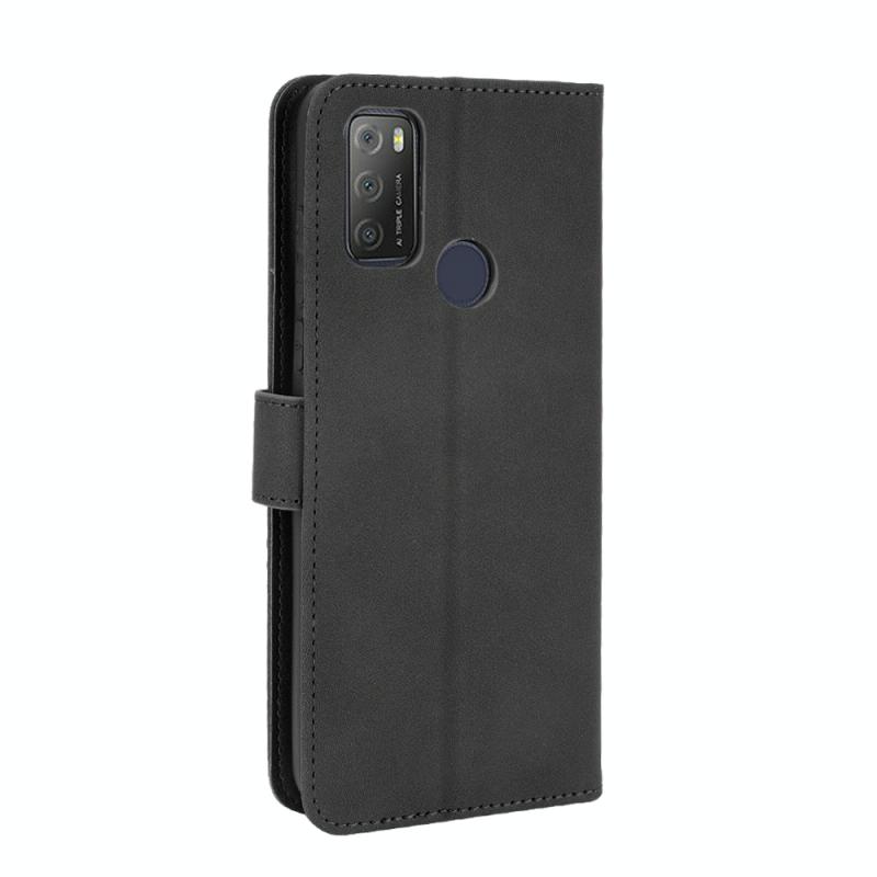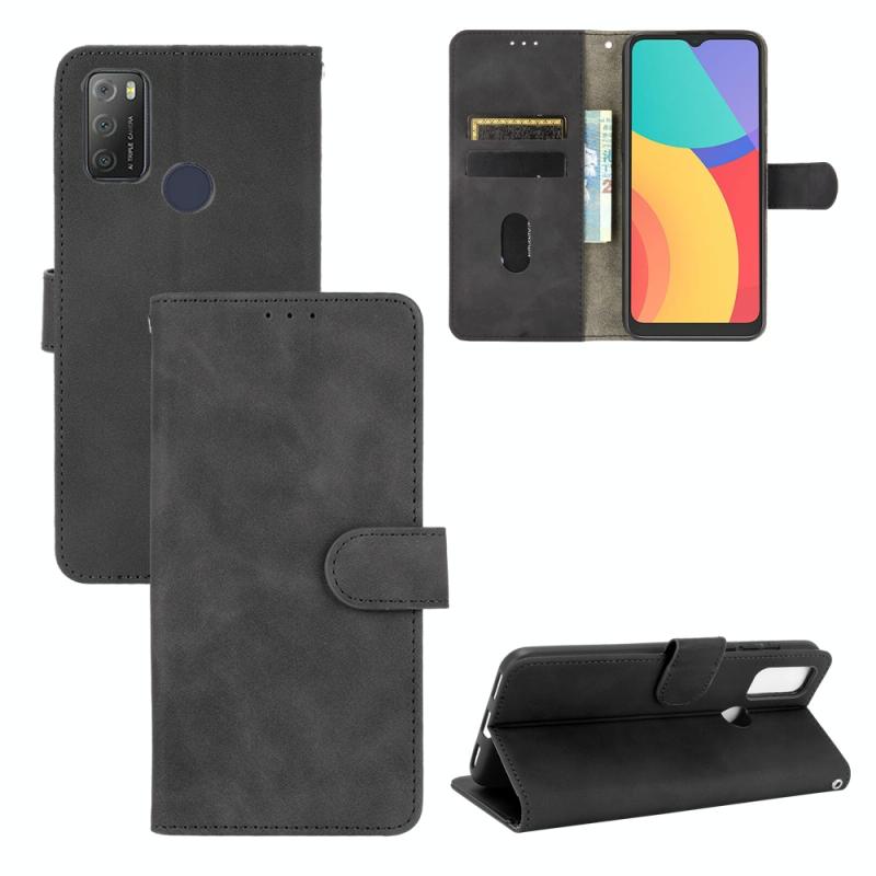 For alcatel 1S (2021) Solid Color Skin Feel Magnetic Buckle Horizontal Flip Calf Texture PU Leather Case with Holder & Card Slots & Wallet(Black)