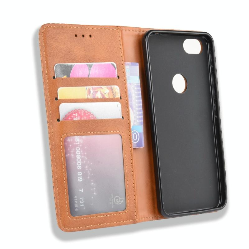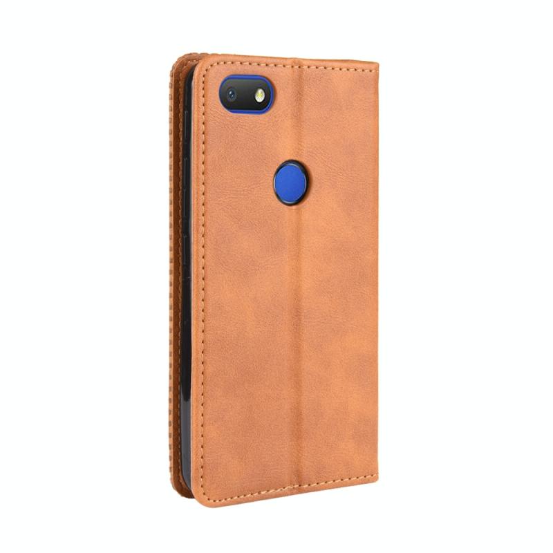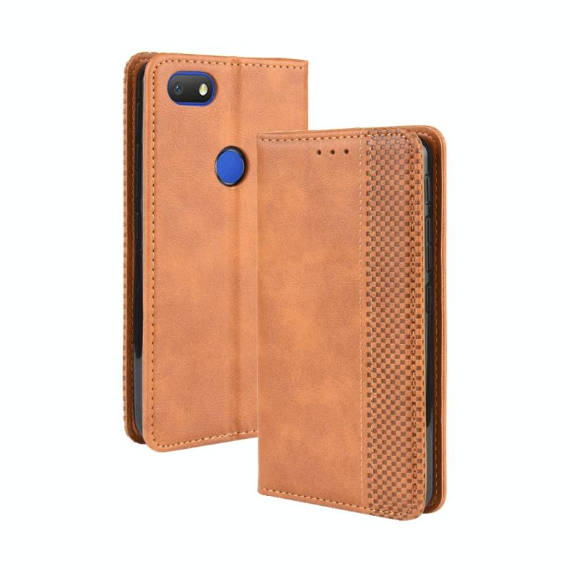 For Alcatel 1V (2019) with Fingerprint Hole Magnetic Buckle Retro Crazy Horse Texture Horizontal Flip Leather Case with Holder & Card Slots & Photo Frame(Brown)