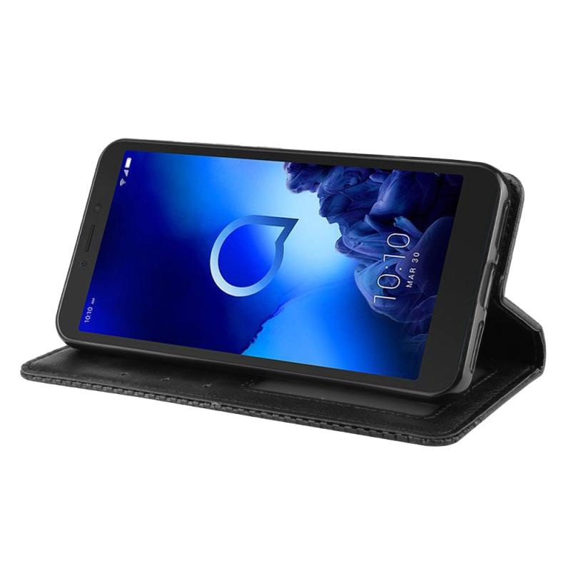 For Alcatel 1V (2019) without Fingerprint Hole Magnetic Buckle Retro Crazy Horse Texture Horizontal Flip Leather Case with Holder & Card Slots & Photo Frame(Black)