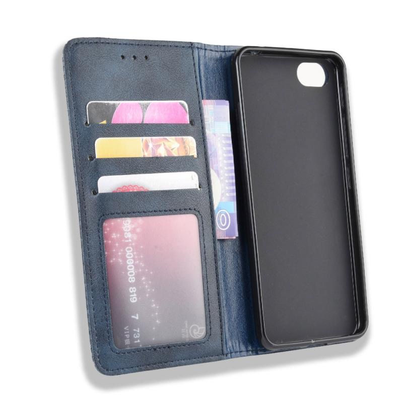 For Alcatel 1V (2019) without Fingerprint Hole Magnetic Buckle Retro Crazy Horse Texture Horizontal Flip Leather Case with Holder & Card Slots & Photo Frame(Blue)