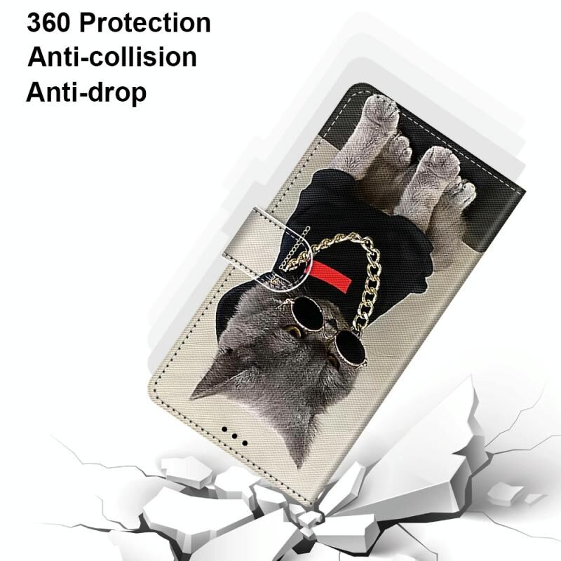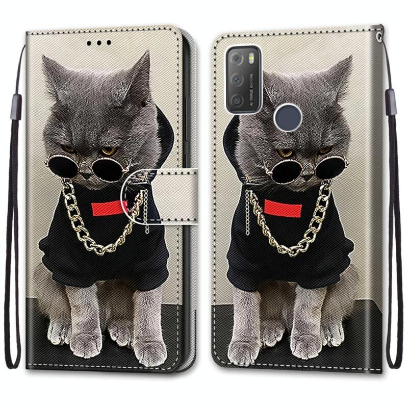 For Alcatel 3L 2021 Coloured Drawing Cross Texture Horizontal Flip PU Leather Case with Holder & Card Slots & Wallet & Lanyard(Golden Chain Grey Cat)