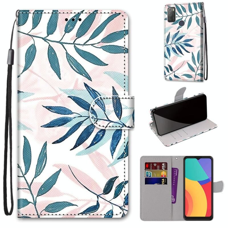 For Alcatel 3L 2021 Coloured Drawing Cross Texture Horizontal Flip PU Leather Case with Holder & Card Slots & Wallet & Lanyard(Pink Green Leaf)