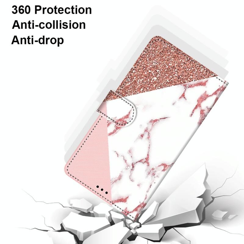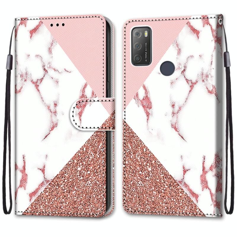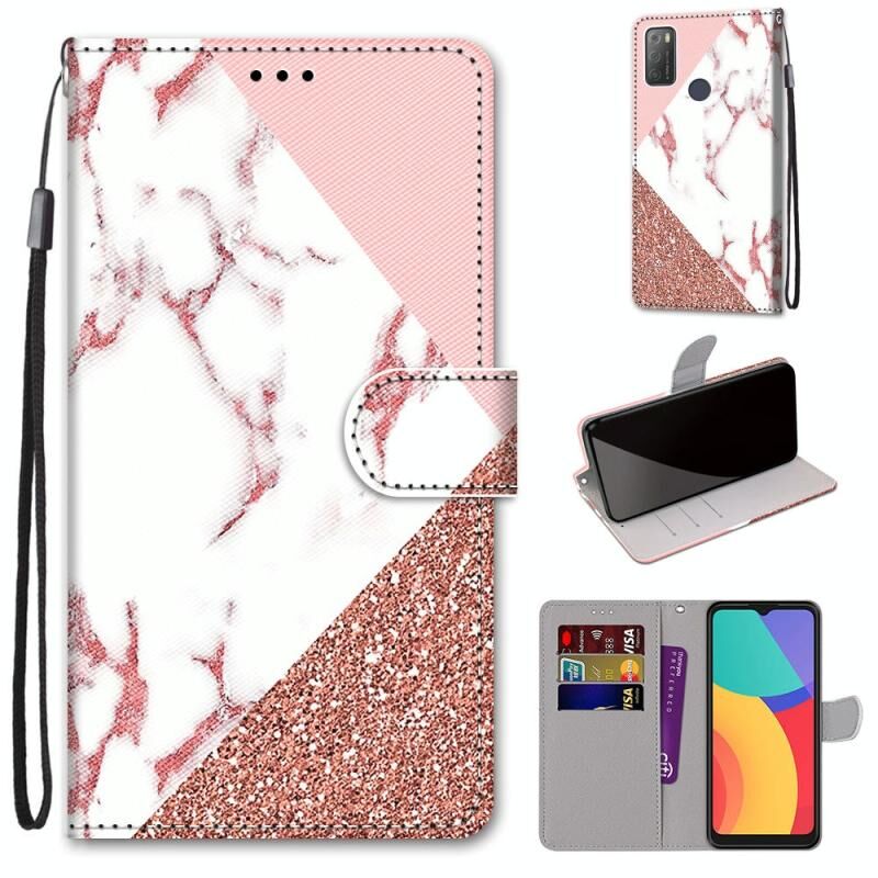 For Alcatel 3L 2021 Coloured Drawing Cross Texture Horizontal Flip PU Leather Case with Holder & Card Slots & Wallet & Lanyard(Pink Stone Texture)