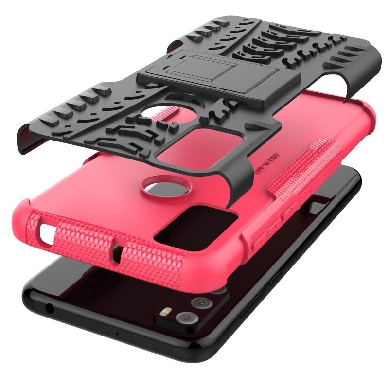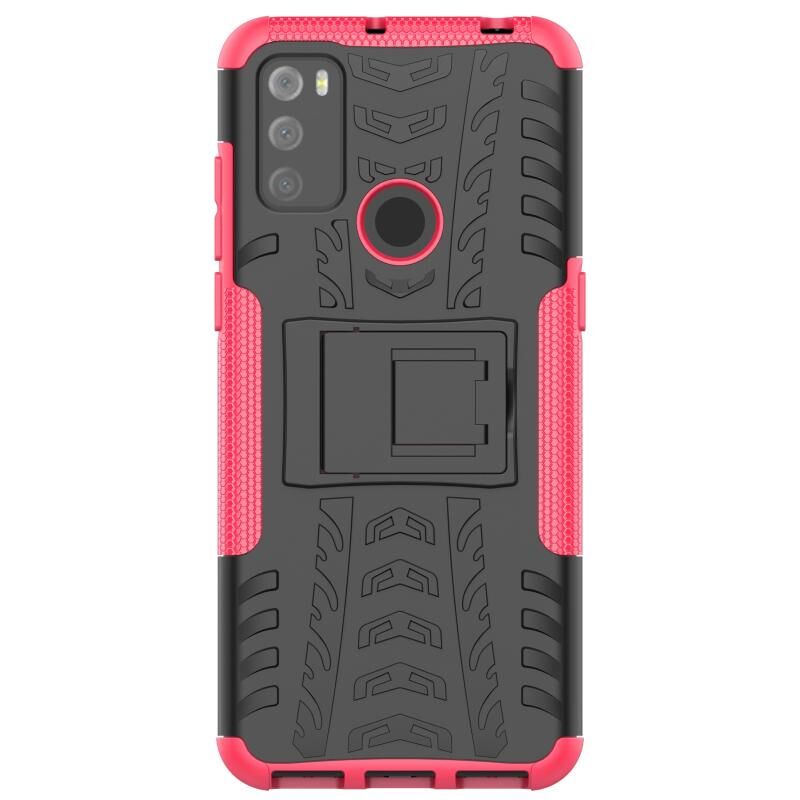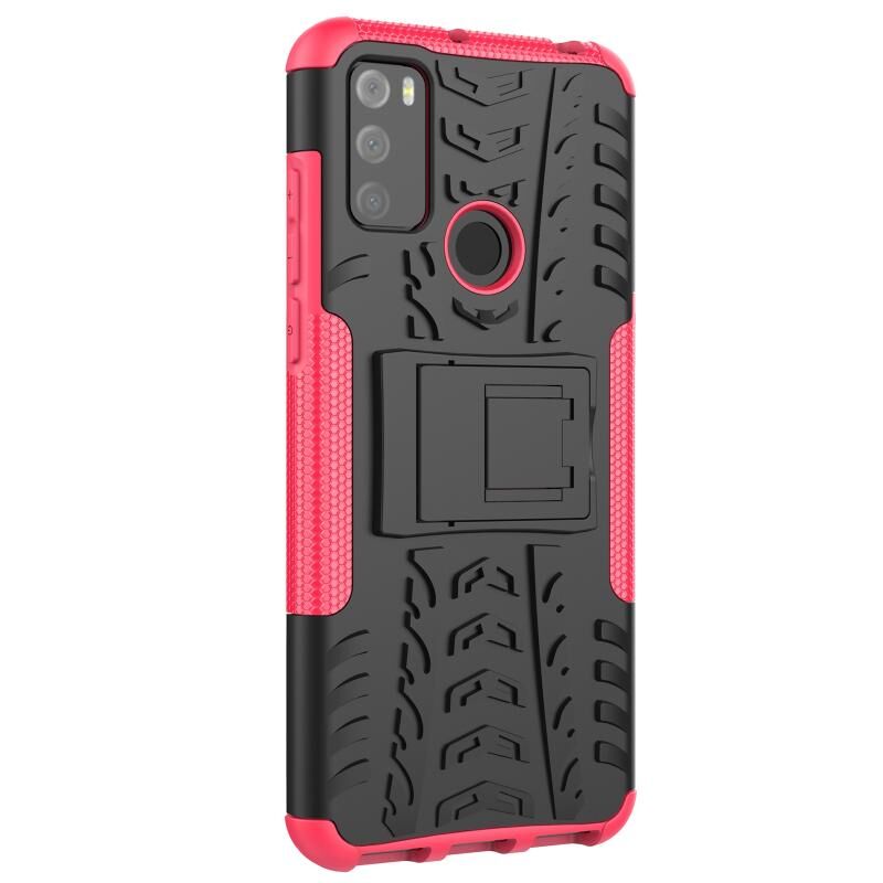 Για Alcatel 3L (2021) ελαστική υφή Shockproof TPU + PC προστατευτική θήκη με κάτοχο (ροζ)