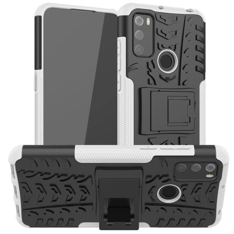Για το Alcatel 3L (2021) Tire Texture Shockproof TPU + PC προστατευτική θήκη με θήκη (λευκό)