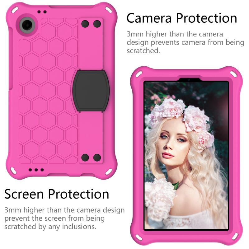 For Alcatel Joy Tab2 2020 / 3T 8.0 Honeycomb EVA Hybrid PC Tablet Case with Strap(Rose Red+Black)