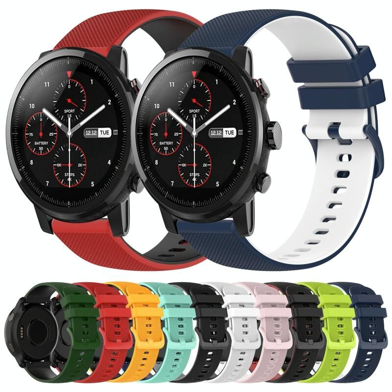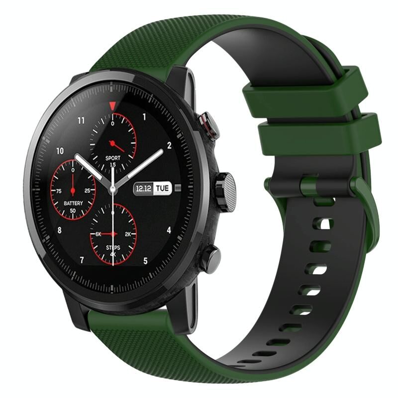 Για Amazfit 2 Stratos 22 χιλιοστά Checkered δύο χρωμάτων σιλικόνης ρολόι μπάντα (Amy Green + Μαύρο)