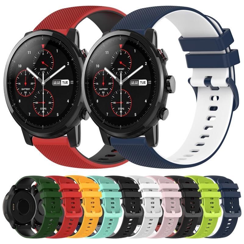 Για Amazfit 2 Stratos 22 χιλιοστά Checkered δύο χρωμάτων ζώνη σιλικόνης ρολόι (Teal + μπλε)