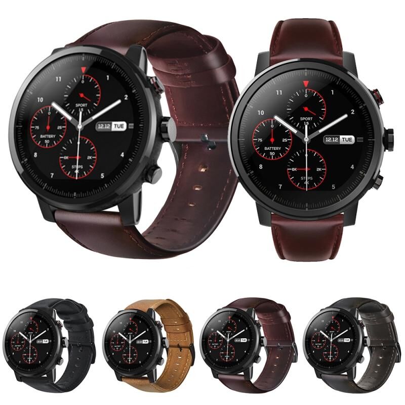 Για Amazfit 2 Stratos Λουρί Ρολογιού από Γνήσιο Δέρμα με Λάδι Κεριού (Μαύρο)